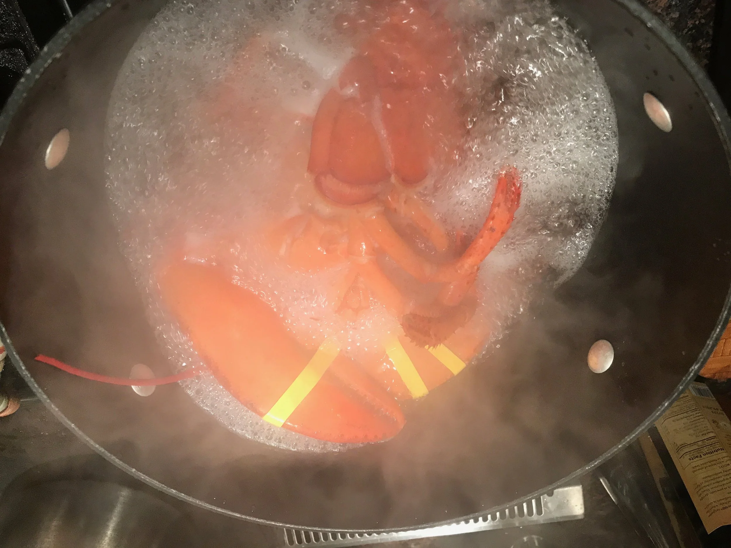 Buy (3) large lobsters, 3 - 4 lbs, or little ones if you have no gumption. Boil some UNSALTED water to cover lobsters; you may need to do these in separate pots. When the water comes to the boil, add the lobsters. Wait until the water comes back to the boil and cook for 7 minutes, REGARDLESS OF THE SIZE OF THE LOBSTER. At 7 minutes, put them in your sink, shock with cold water, and start making a lobster stock with the lobster cooking water.