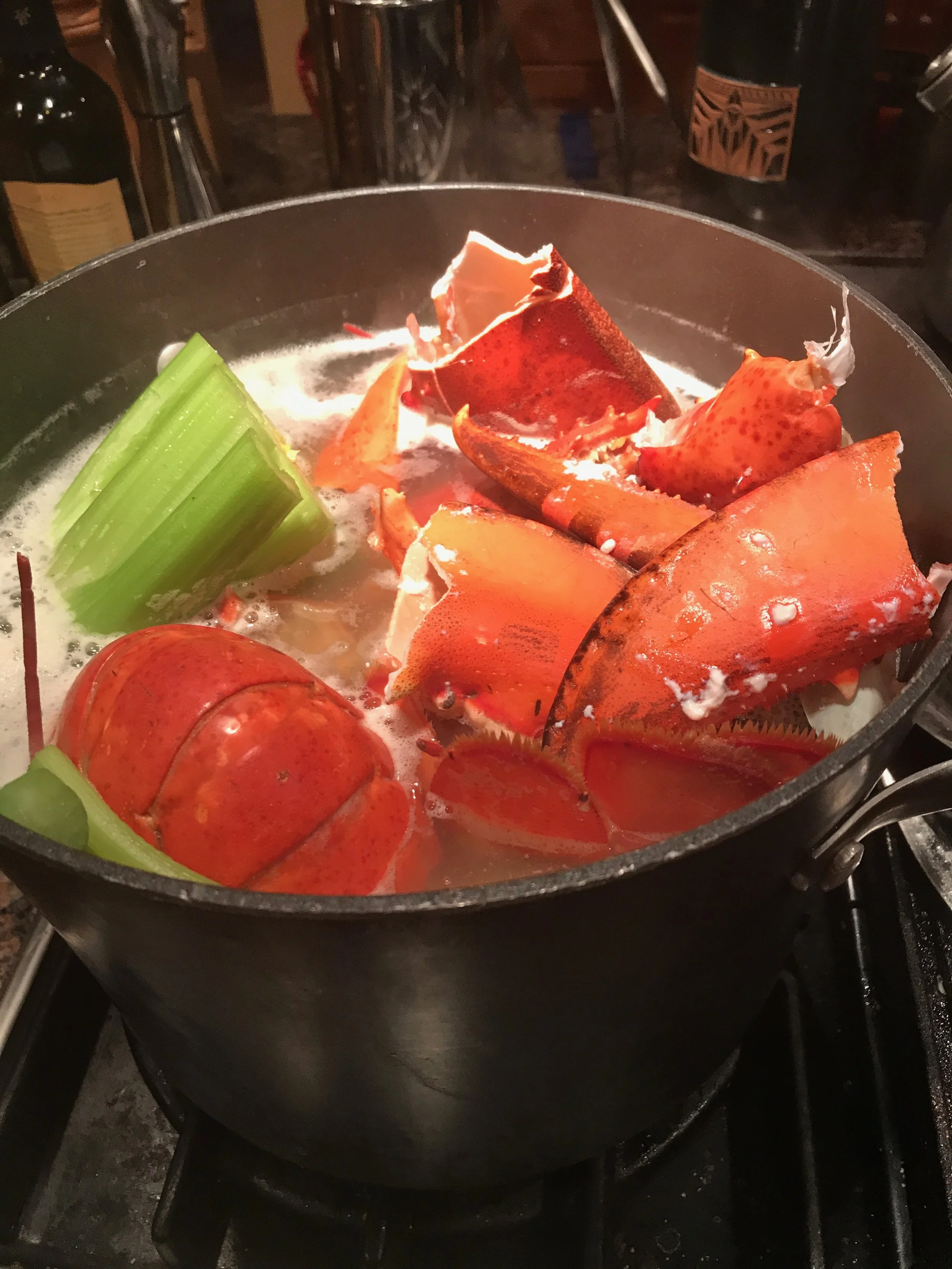 The key is the lobster stock. You can use canned if you can find it, and buy cooked lobster meat, which makes this come together fairly quickly. But I make my own. The stock must be cooked for a few hours, then strained. Directions below.